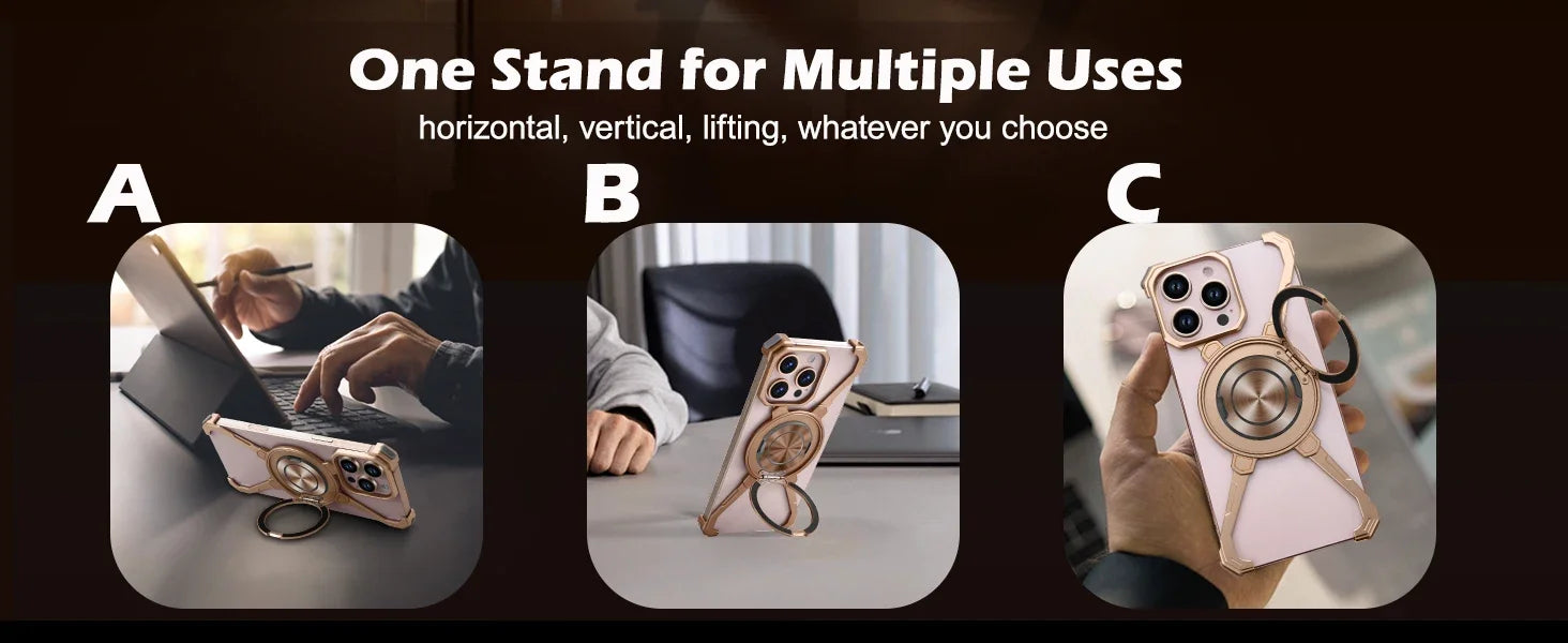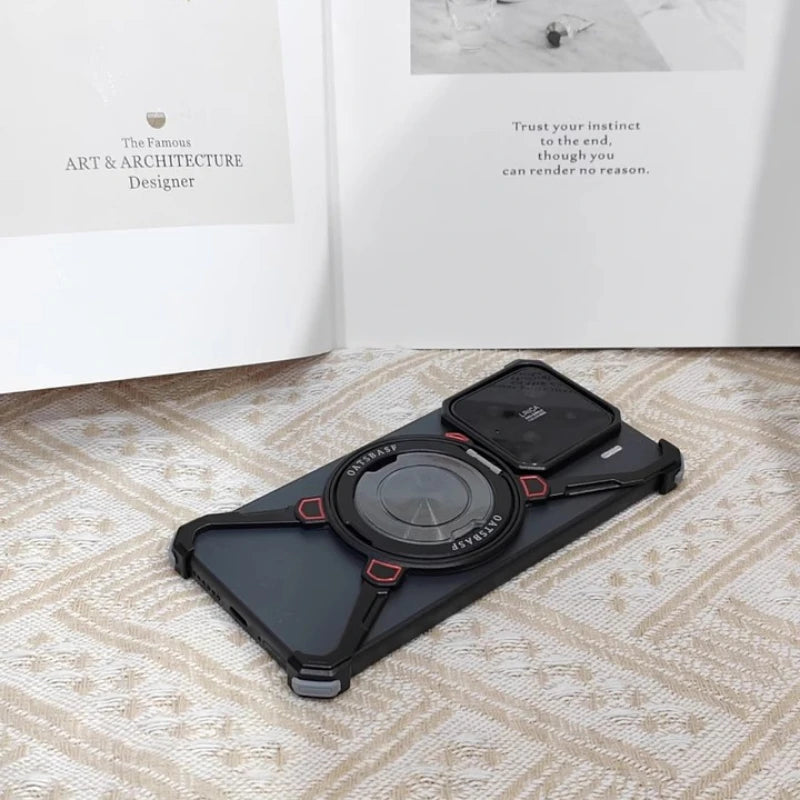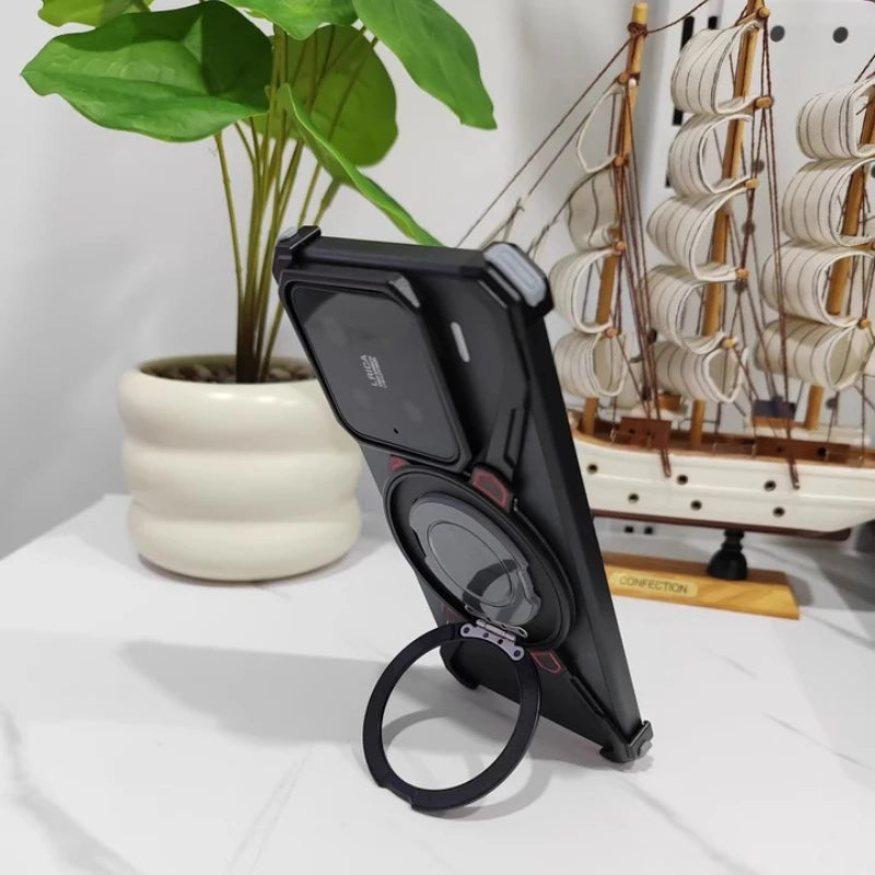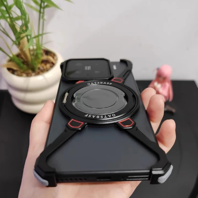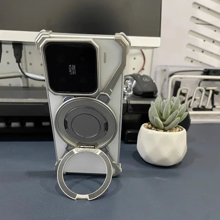 Oatsbasf Magic Claw Phone Case for Xiaomi 15/15Pro Metal Frameless Magnetic Protective Cover with 360°Rotation Stand Shockproof