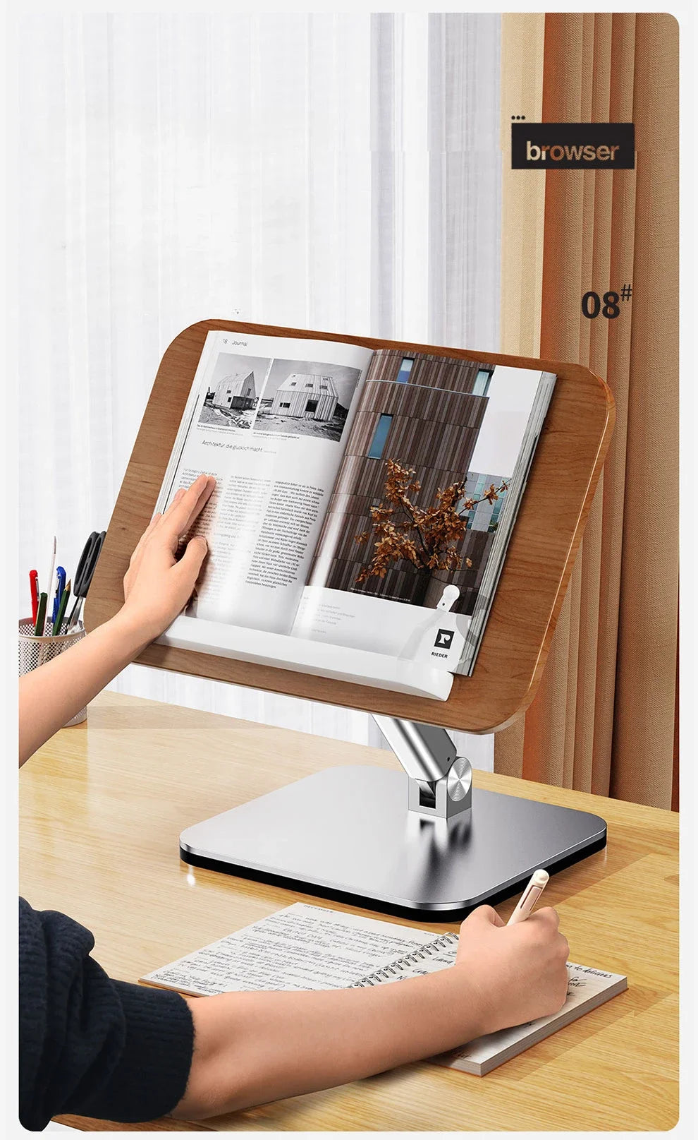 Oatsbasf Wood Reading Stand 23-31cm Height Adjustable Tablet Stand Holder Desktop iPad Stand 180° Angle Adjustable Book Bracket