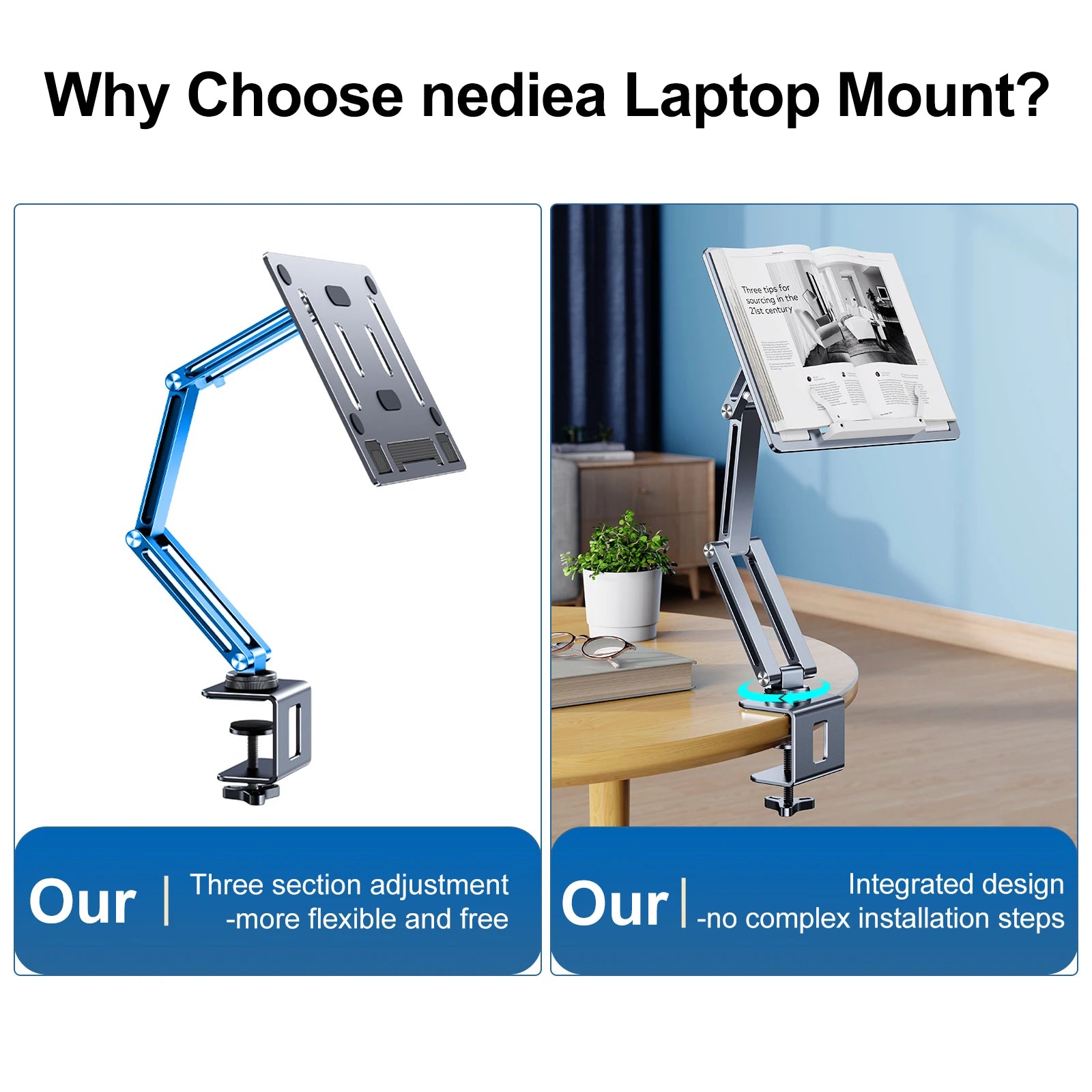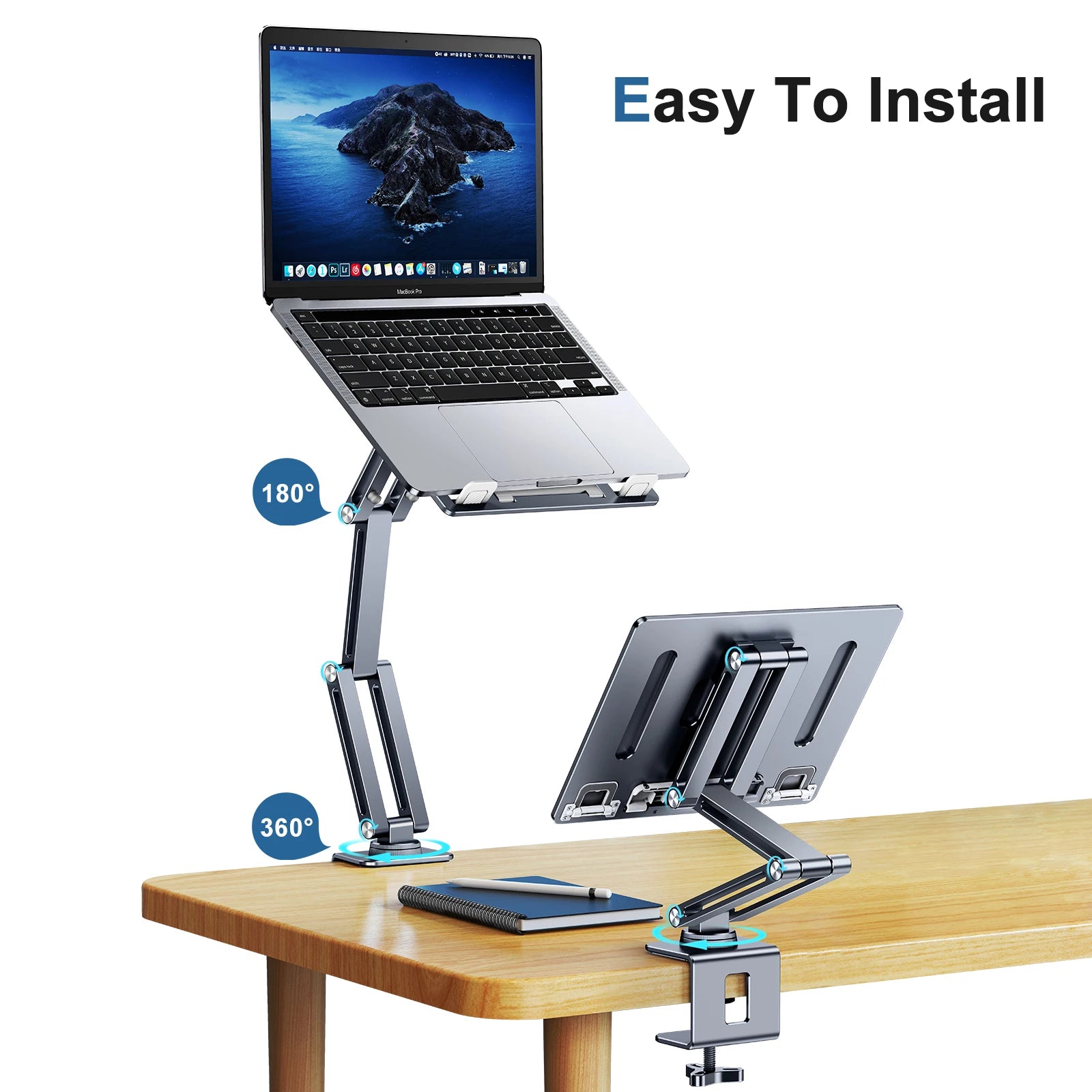 Oatsbasf 360°Rotatable Laptop Stand Clamp Tablet Hightening Support Holder Book Bracket Height Adjustable Desktop Bed Lazy Stand