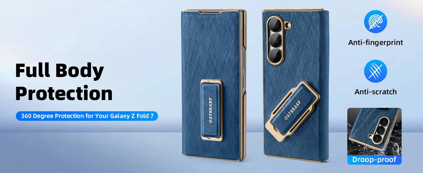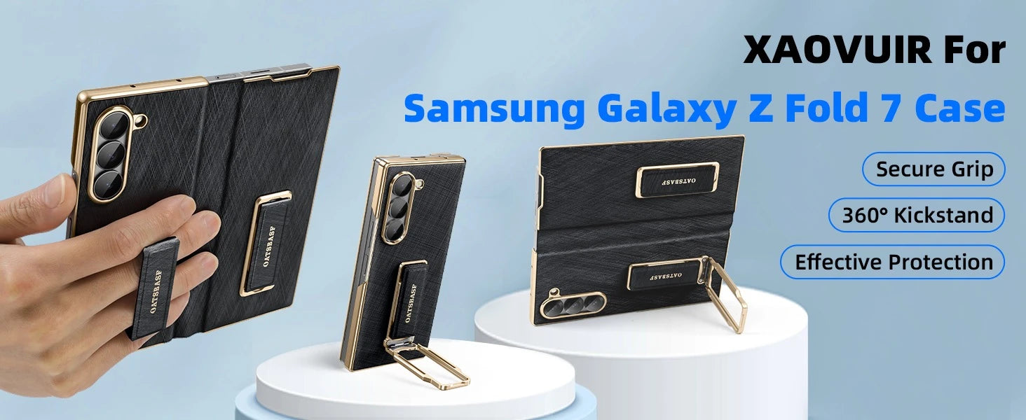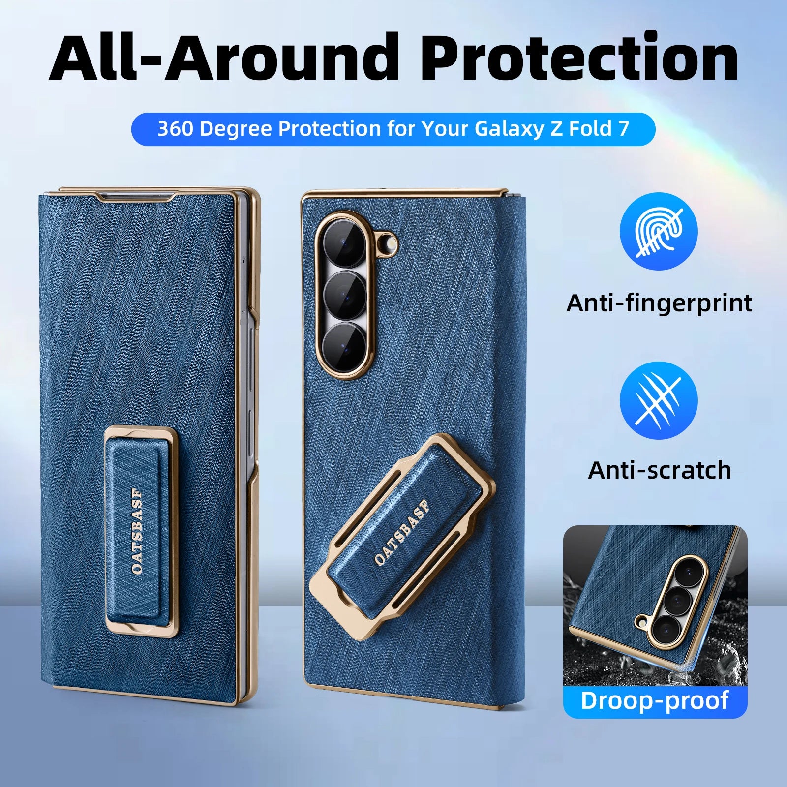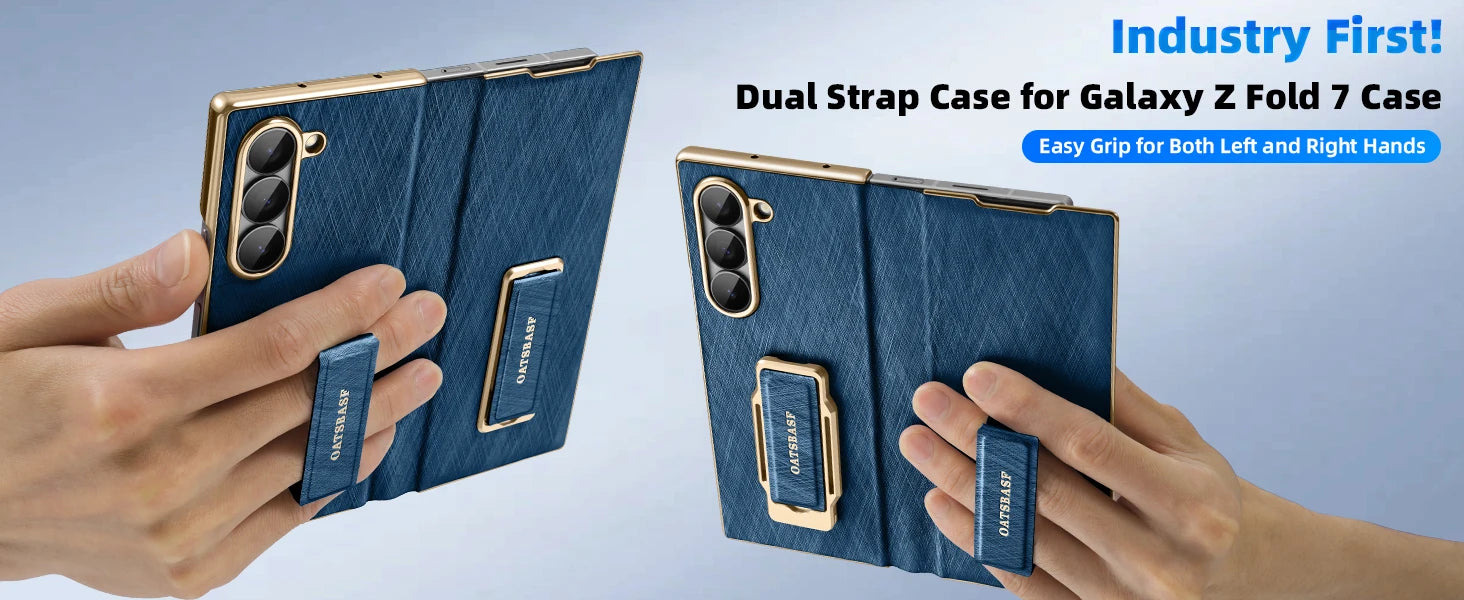 Oatsbasf Dual Strap Leather Case for Samsung Galaxy Fold 7 6 Phone Case with Stand 360° Rotatable Shockproof Protective Cover