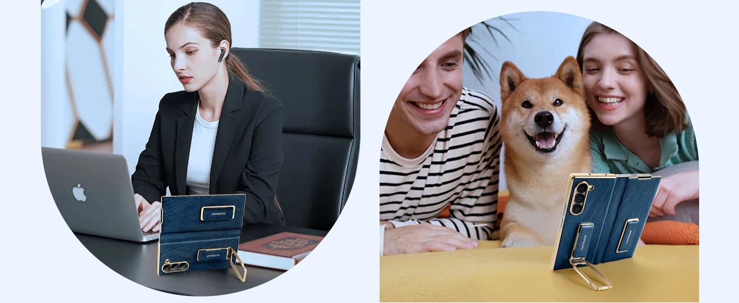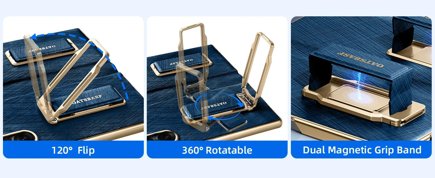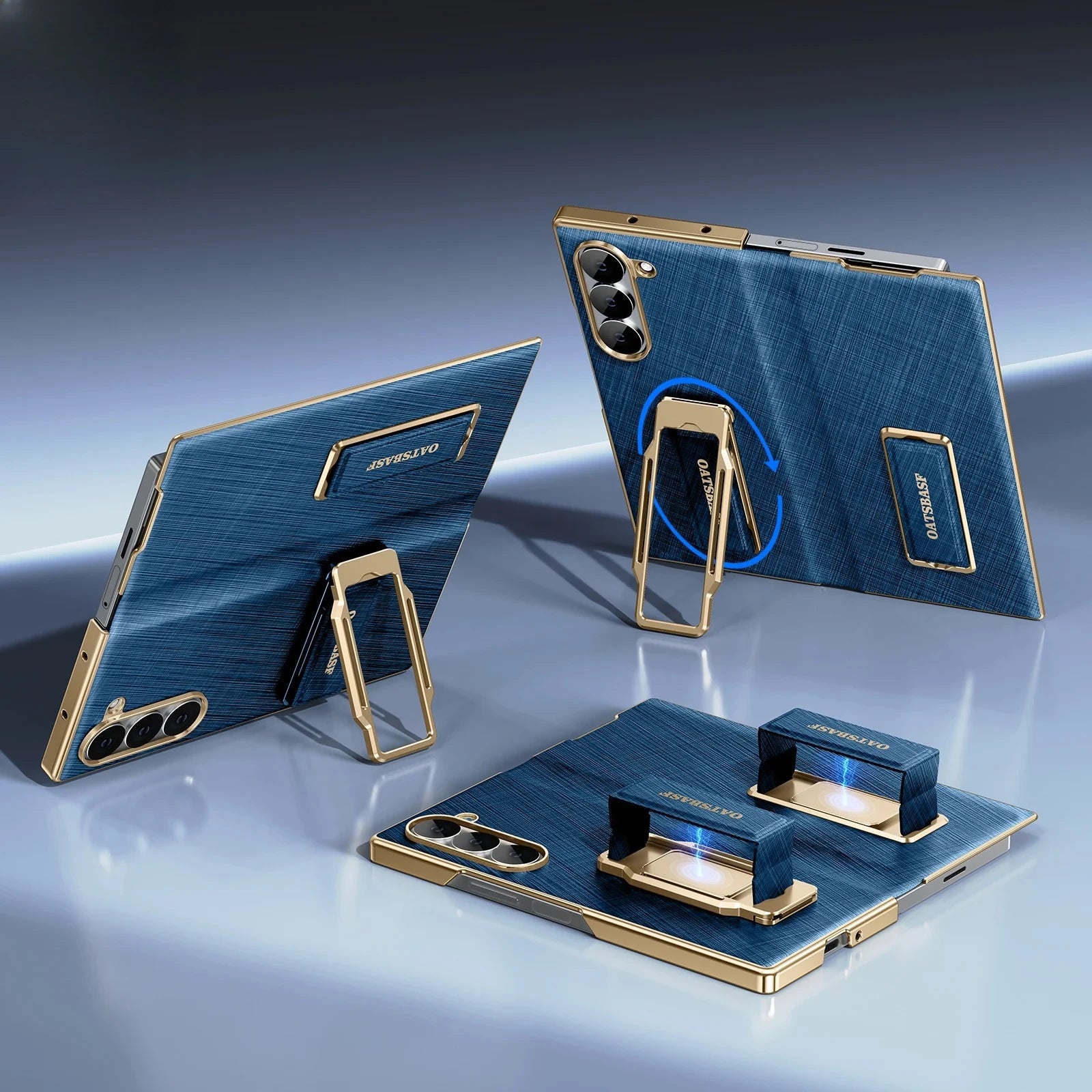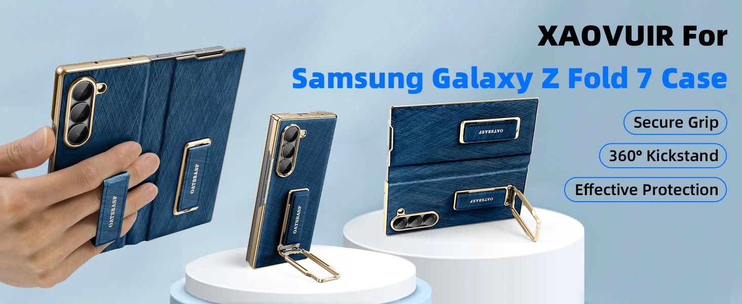 Oatsbasf Dual Strap Leather Case for Samsung Galaxy Fold 7 6 Phone Case with Stand 360° Rotatable Shockproof Protective Cover
