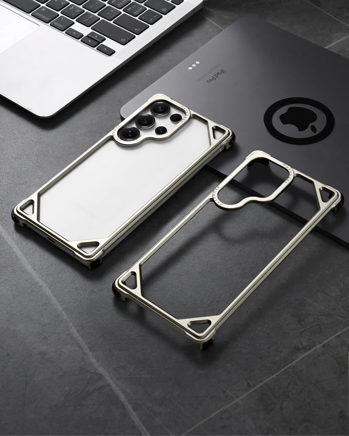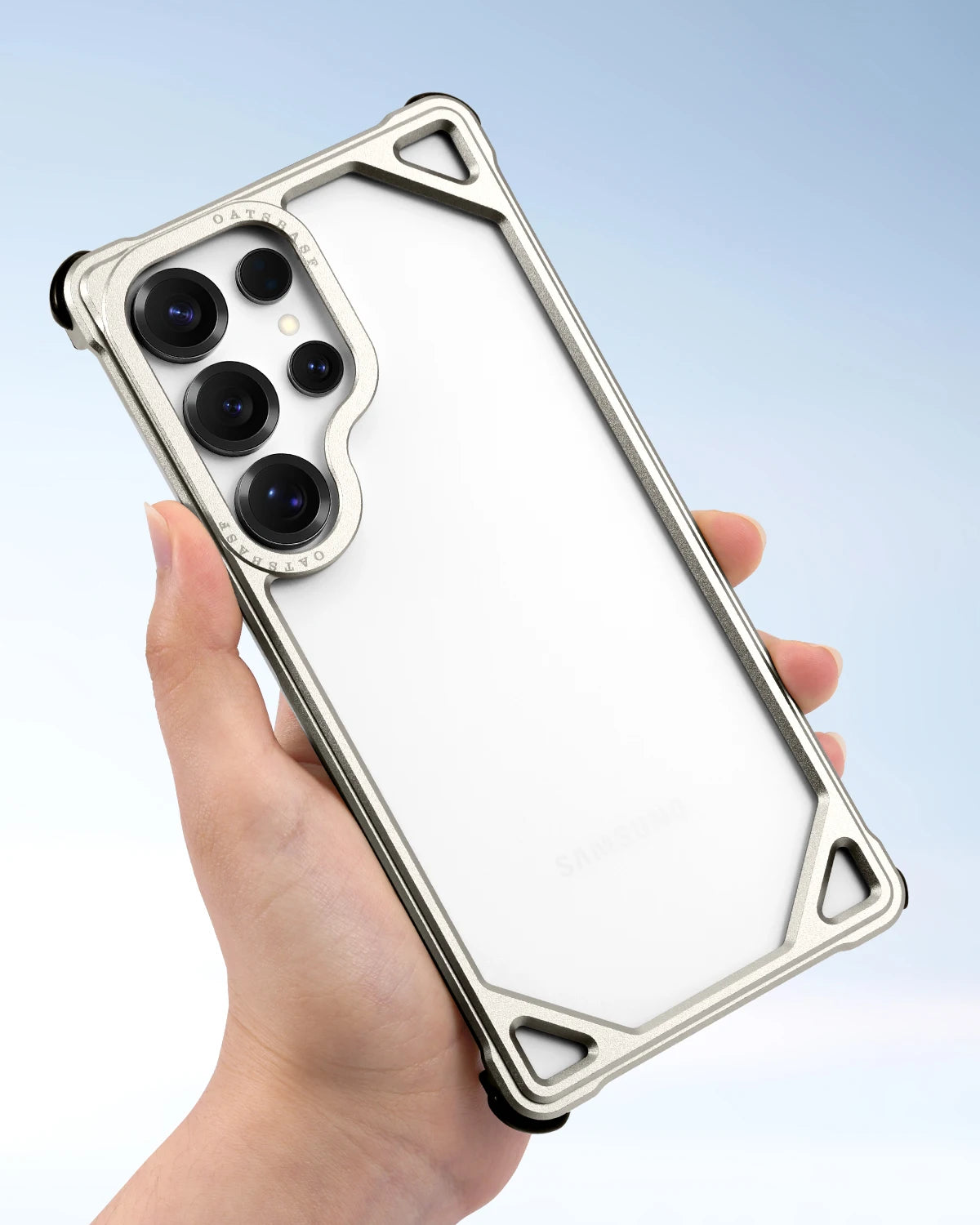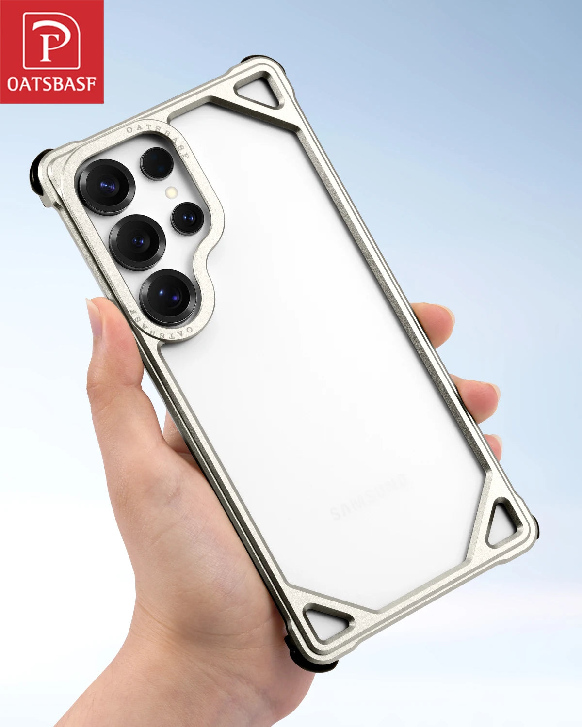 Oatsbasf Metal Frameless Phone Case for Samsung Galaxy S25 Ultra Minimalist Bumper Ultra-thin Protective Cover Wireless Charging