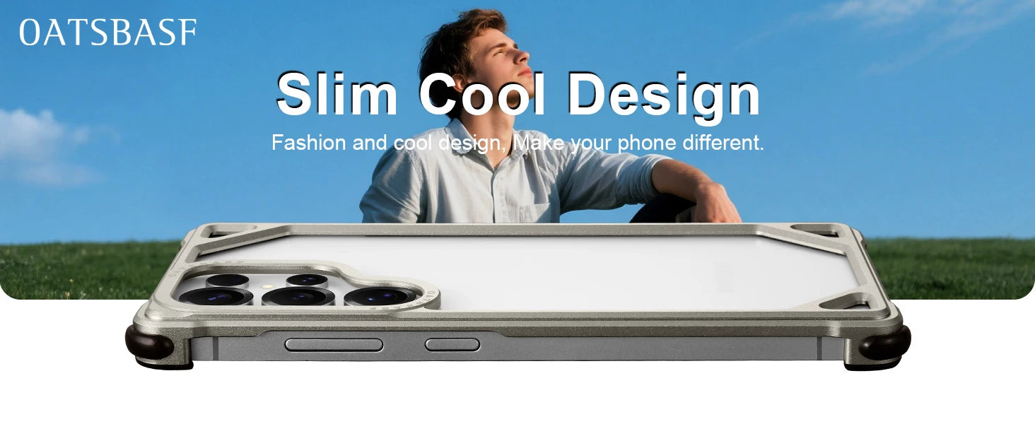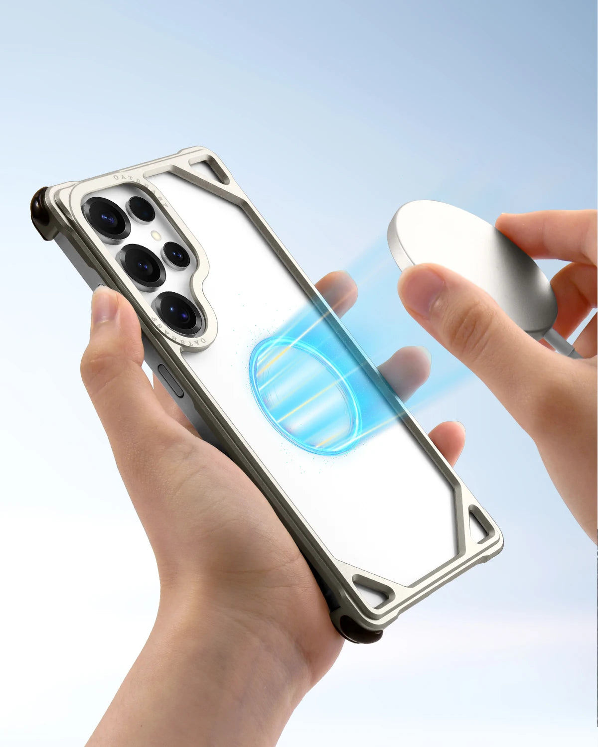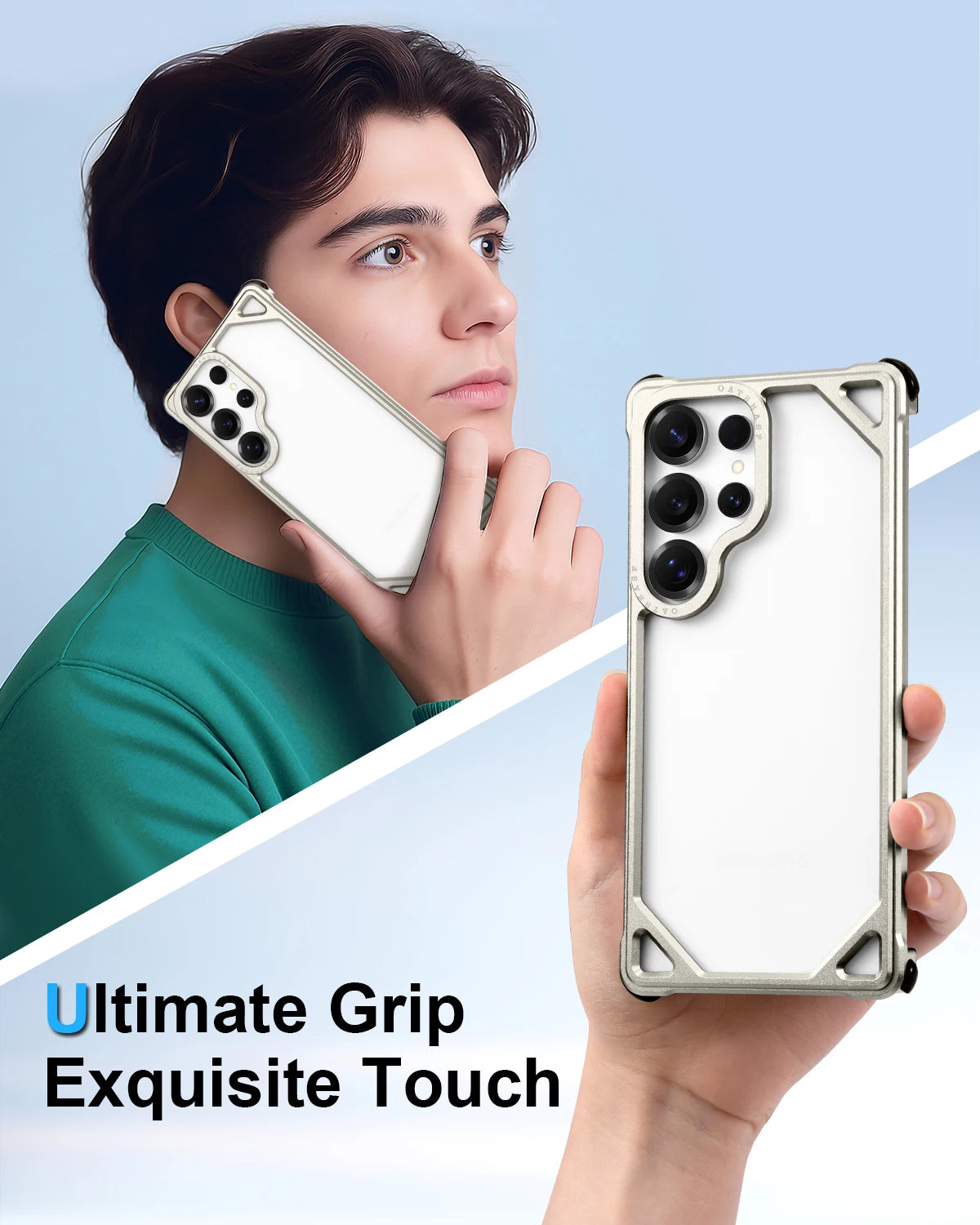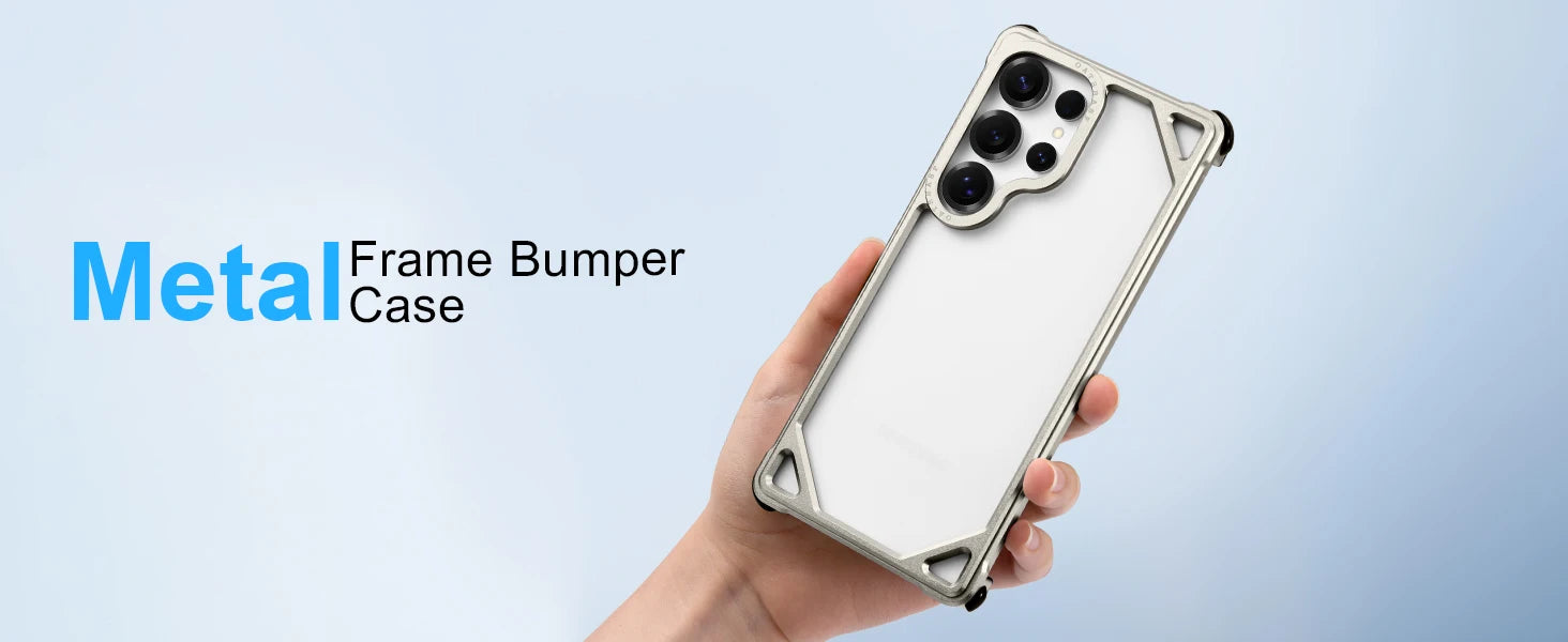 Oatsbasf Metal Frameless Phone Case for Samsung Galaxy S25 Ultra Minimalist Bumper Ultra-thin Protective Cover Wireless Charging