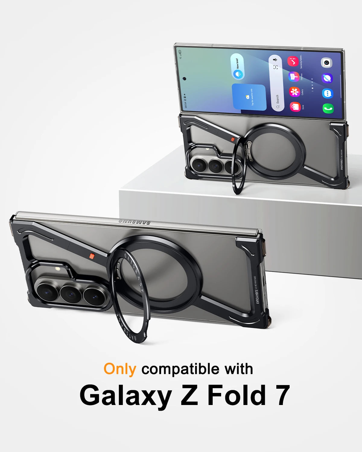 Oatsbasf Magnetic Metal Case for Samsung Galaxy Z Fold 7 Phone Case with 360° Rotatable Ring Stand Phone Cover Bumper Shockproof