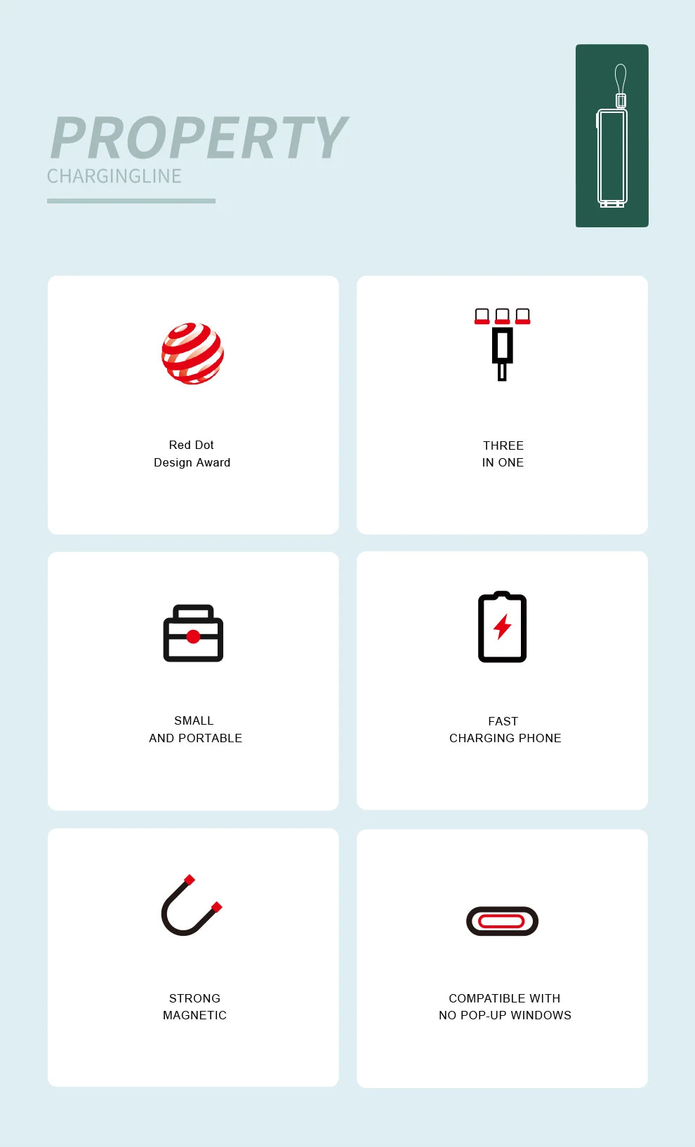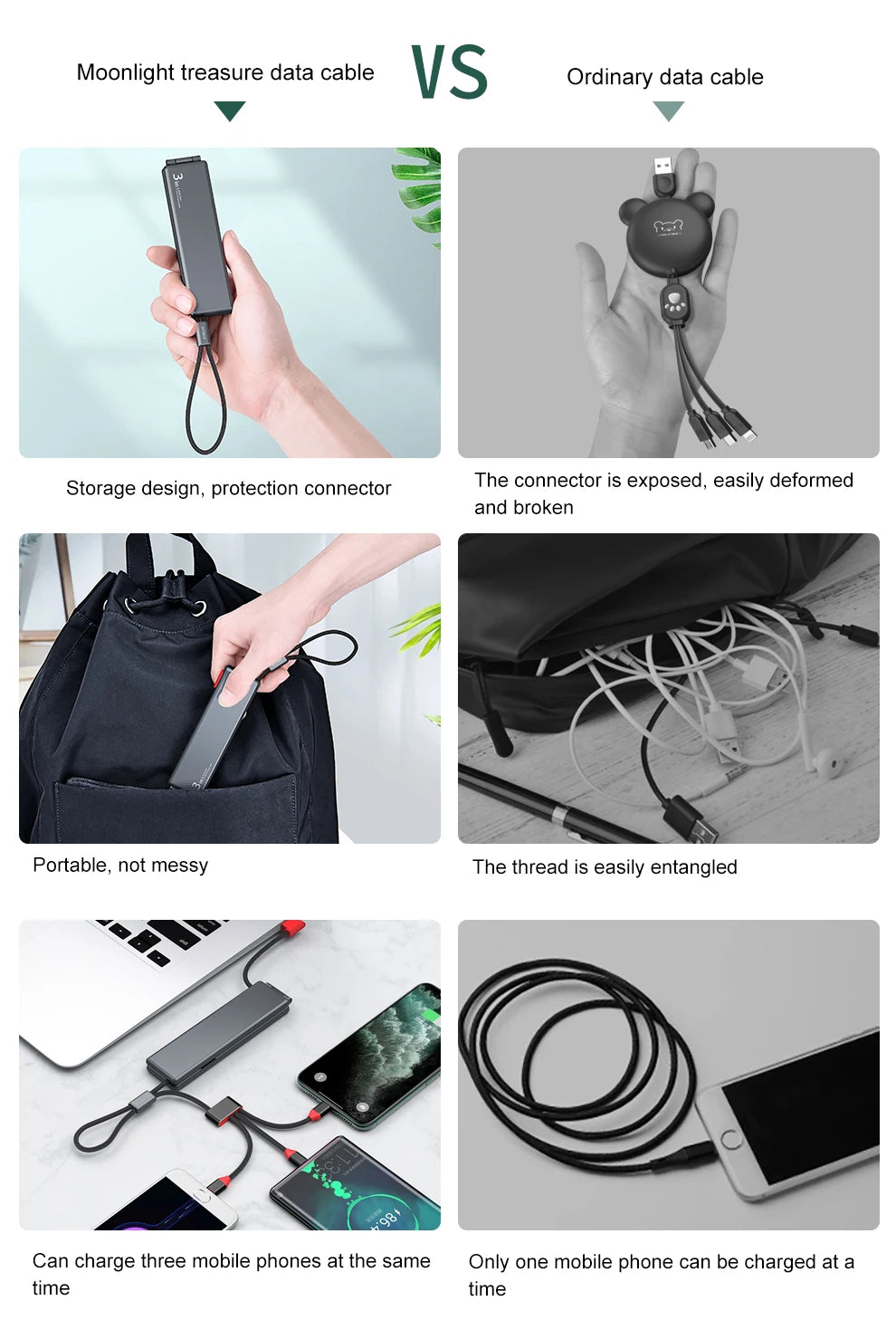Features 2: MAGNETIC BOX,One Dragging Three Data Charge Cable