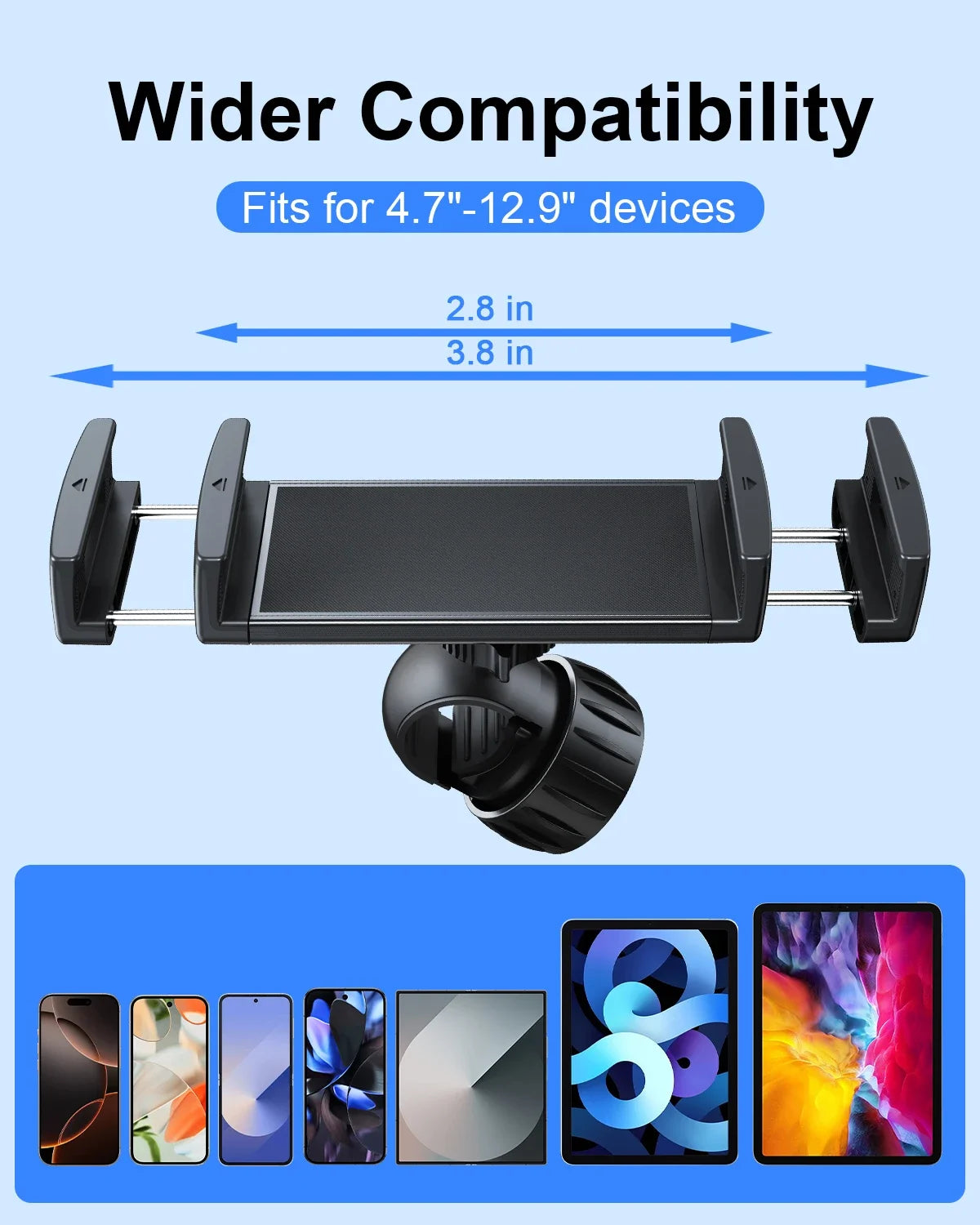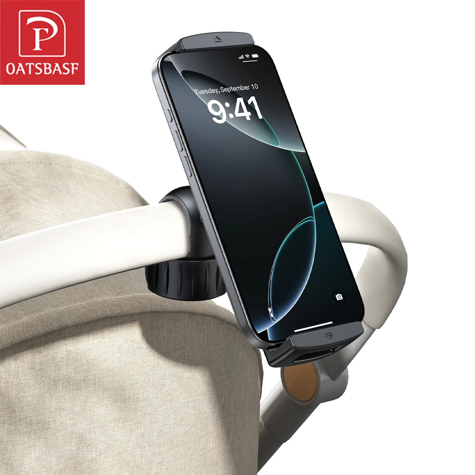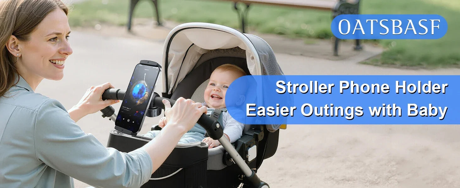 Oatsbasf 360°Rotatable Clip Phone Holder Stand for Baby Stroller Phone Holder for 4.7-12.9" iPhone iPad Tablet Holder Hands Free