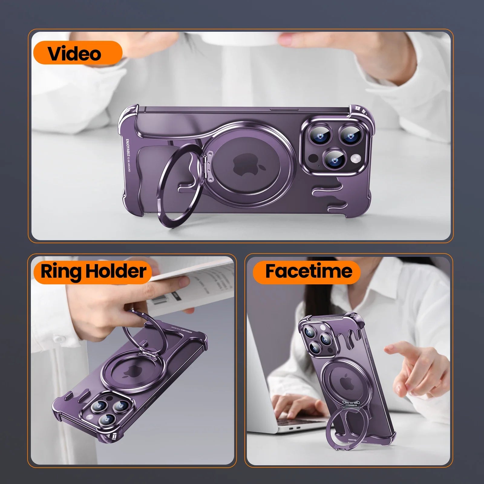 Oatsbasf Magsafe Phone Case for iPhone13/14/15/16 Pro Max w/ 360° Rotatable Ring Stand Holder Drop-Proof Bumper Protective Cover