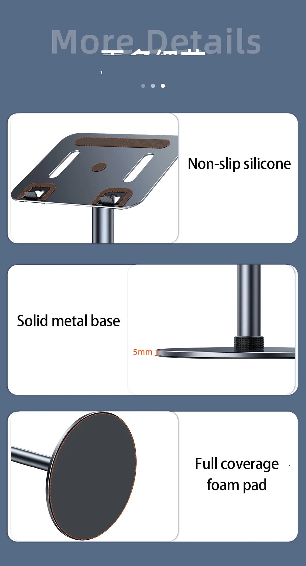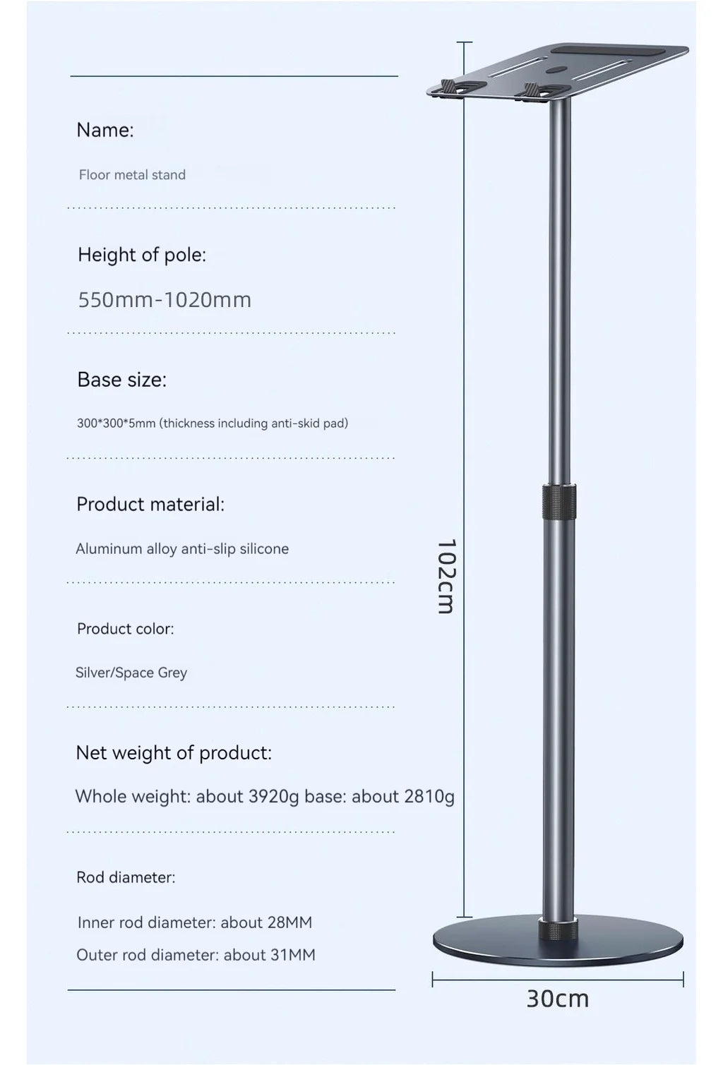 Oatsbasf Metal Aluminum Laptop Floor Stand Standing Desk Adjustable Floor Holder Projector Stand Accessories for Macbook & IPad