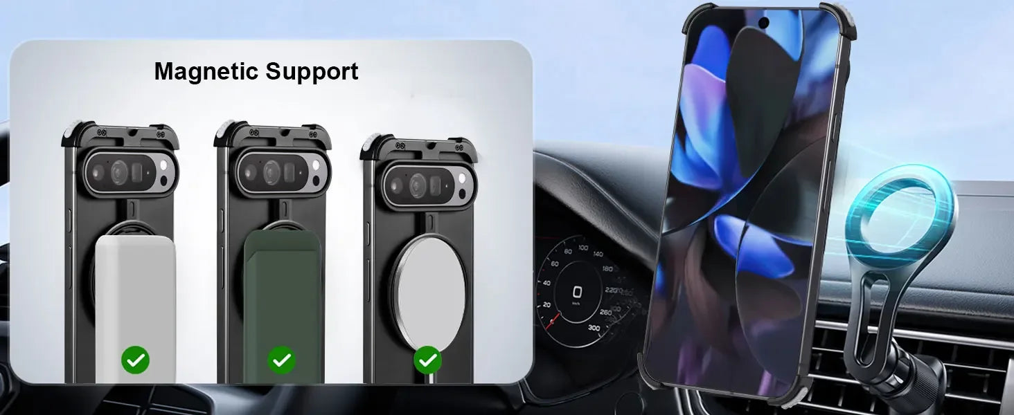 Features: Magnetic,Shock Proof,With Ring,External Photo Lens,WIth Kickstand
